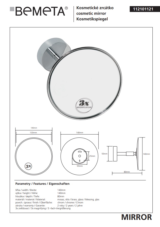 Зеркало косметическое, крепления