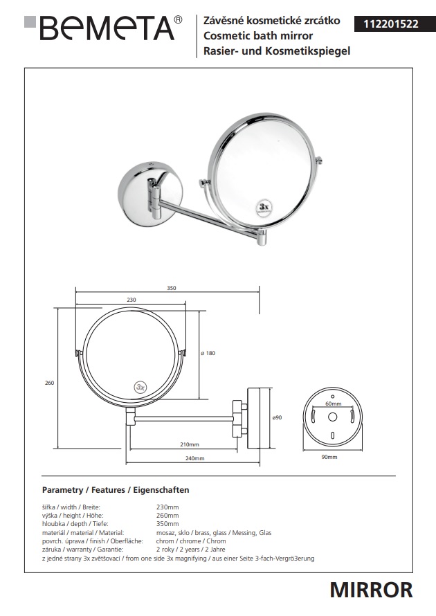 Зеркало косметическое, крепления