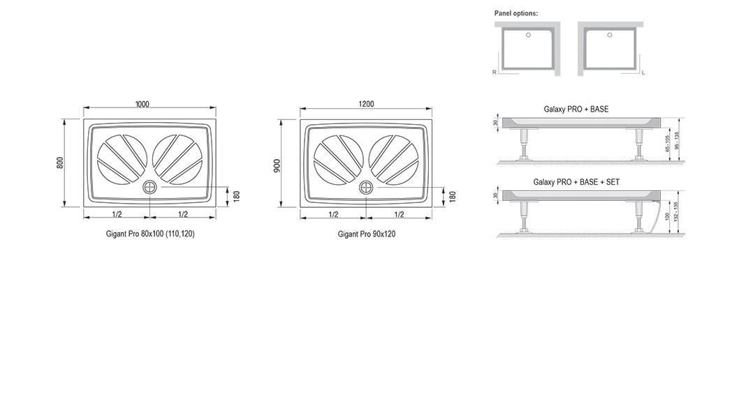 Поддон Gigant Pro подходит для душевых уголков SRV2-S+SRV2-S, ASDP3+APSS, SDZ3+PSS, SDOP+PSS, BLRV2K+BLRV2K, BLDP2+BLPS, BLDP4+BLPS, NRDP2+RPS, NRDPR4 + RPS, PDOP2+PPS, CRV1+CRV1, CRV2+CRV2, CRV2+CPS, SMSD2+SMPS, BSDPS и ванных комнат с душевыми дверьми ASDP3, SDZ3, SDOP, BLDP2, BLDP4, PDOP1, PDOP2, NRDP2, NRDP4, CSD1, CSD2, CSDL2, SMSD2, BSD2, BSD3.