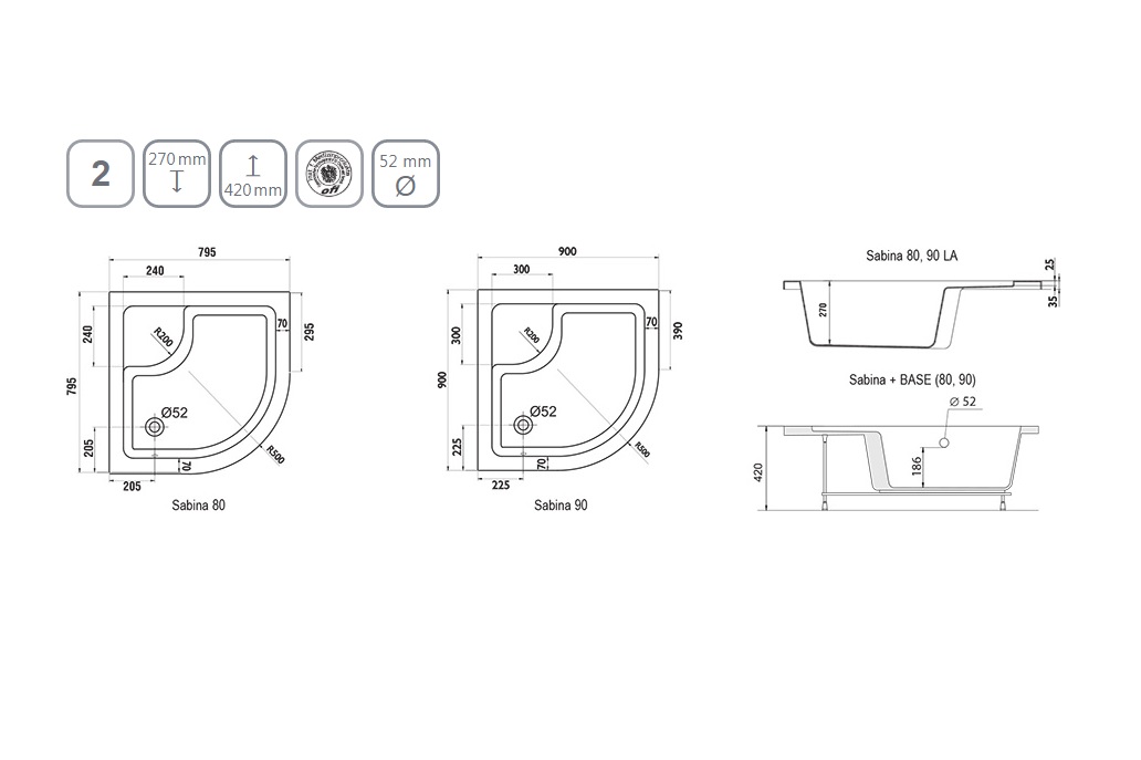 Ножки и панель заказываются отдельно. Поддон Sabina Поддон подходит для укороченных душевых уголков SKCP4 или BLCP4 Sabina. Поддон рекомендуем дополнить сифоном RAVAK Sabina. Для установки поддона рекомендуем использовать универсальный монтажный набор.