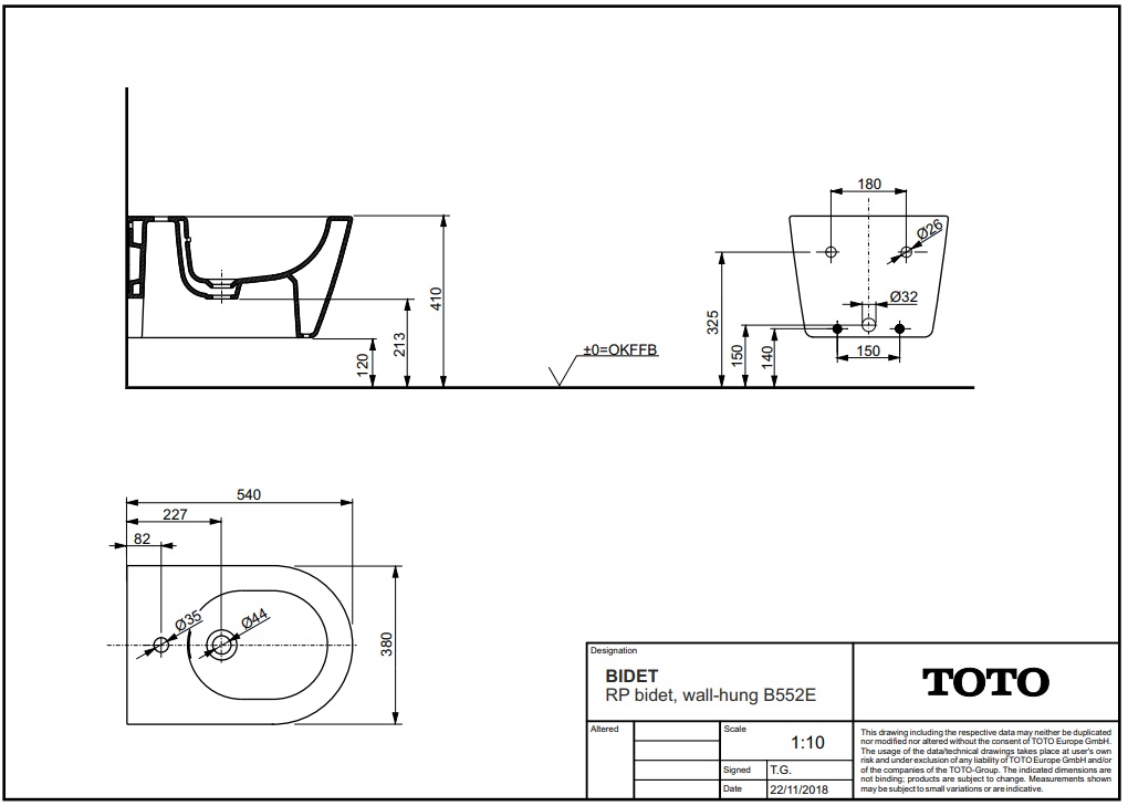 Биде подвесное, серия RP, с отверстием под смеситель, с переливом