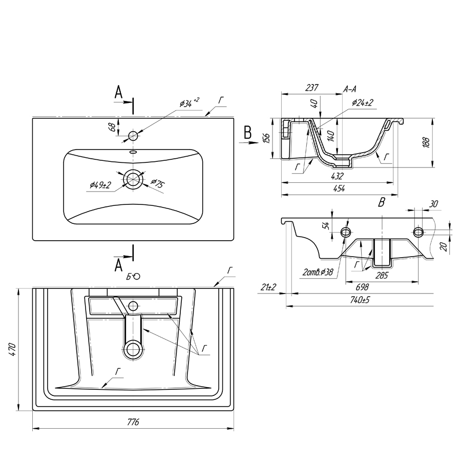Расположение отверстий под смеситель