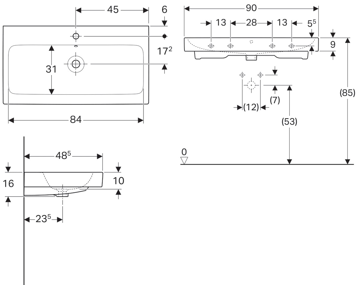 Расположение отверстий под смеситель