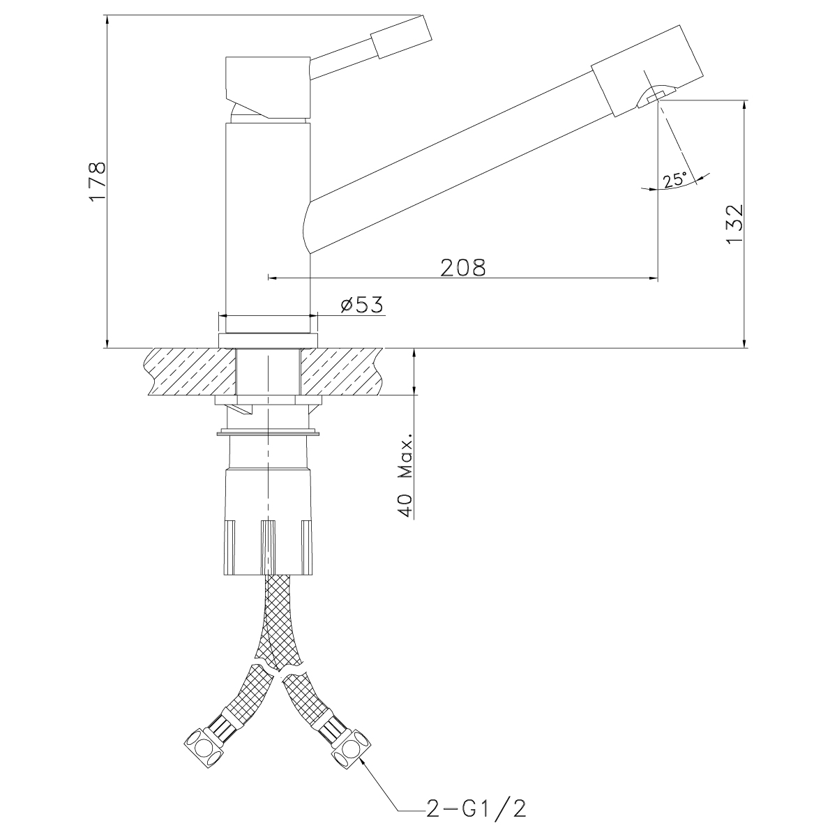 Однорычажный кухонный смеситель: 1;Соединительные шланги: 2;Крепежный набор: 1;Инструкция по монтажу: 1;