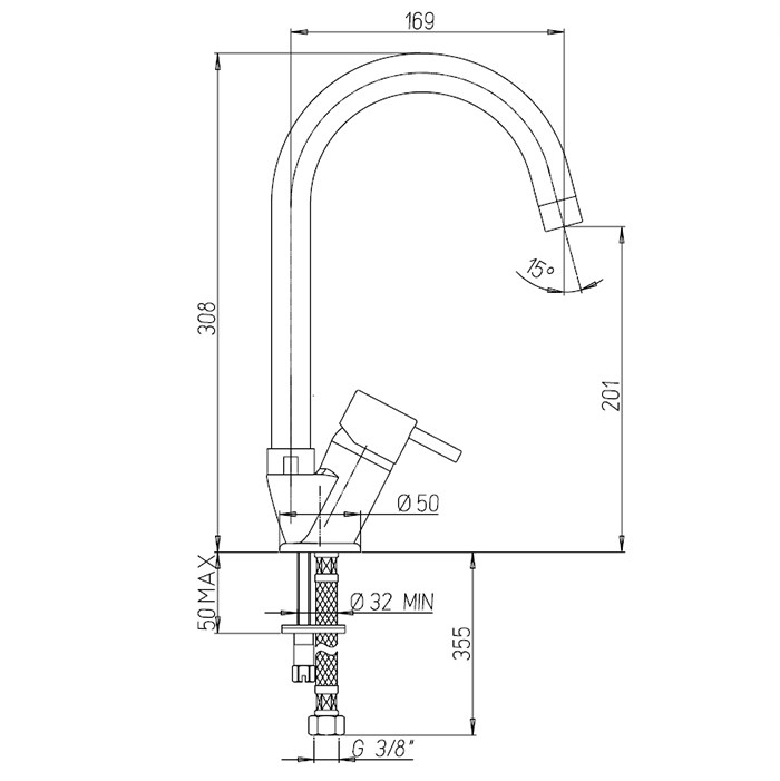 Однорычажный кухонный смеситель: 1;Соединительные шланги: 2;Крепежный набор: 1;Инструкция по монтажу: 1;