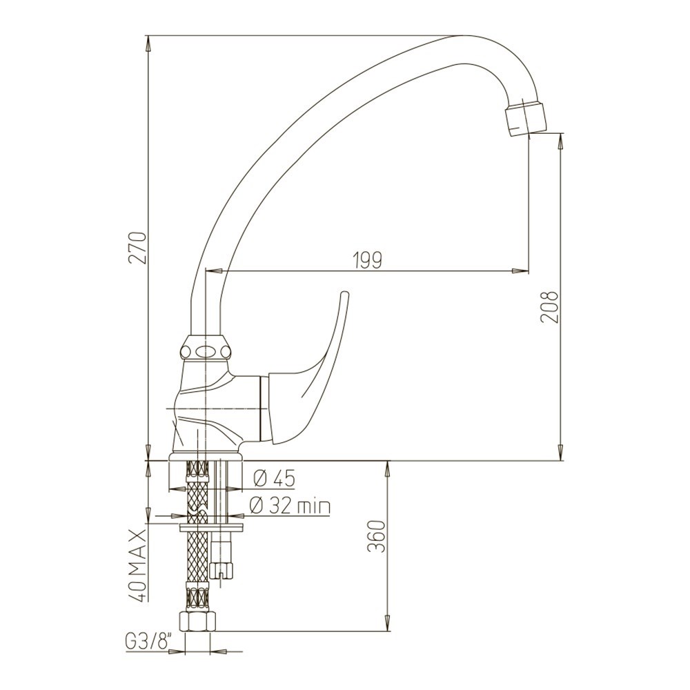 Однорычажный кухонный смеситель: 1;Соединительные шланги: 2;Крепежный набор: 1;Инструкция по монтажу: 1;