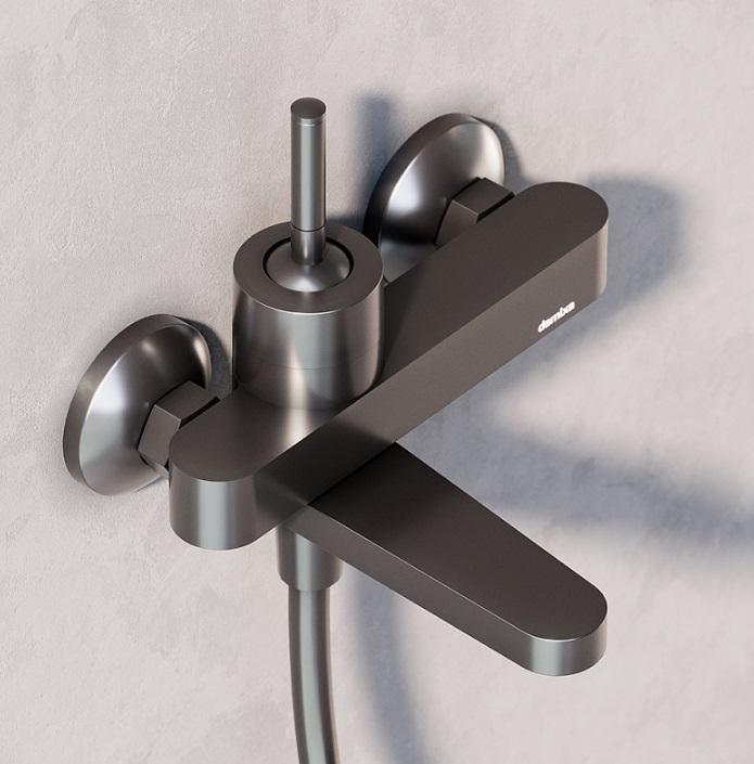 Смеситель для ванны и душа Arc с поворотным изливом и технологичным джостиковым управлением.