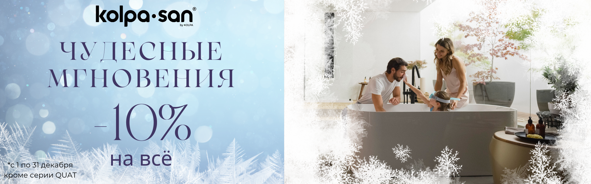 В декабре - 10% на все готовые изделия фабрики Kolpa, кроме серии QUAT.