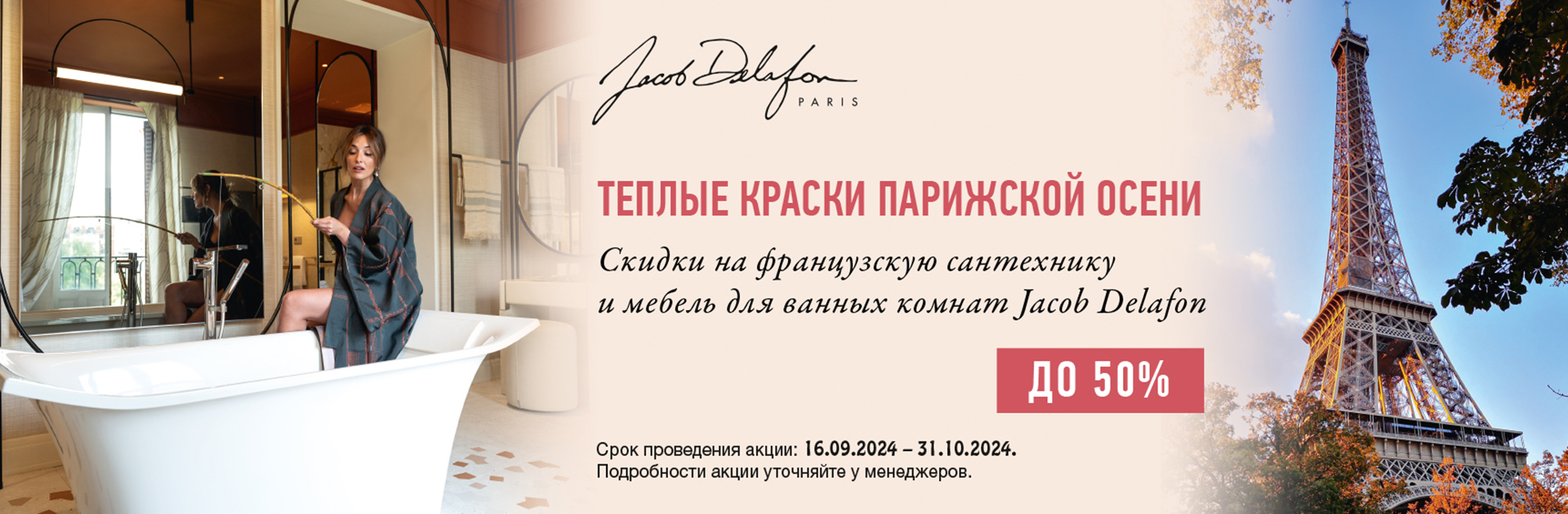 Встречайте новую промо-акцию "Теплые краски парижской осени от Jacob Delafon!" - всемирно известного производителя мебели и сантехники из Франции.