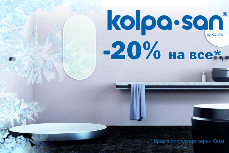 Зимняя акция с "Kolpa-San"! Компания "Kolpa" проводит очередную акцию! В период с 01 по 31 декабря Вас ждут скидки 20% на всю продукцию «Kolpa-San», кроме серии Quat ! Желаем Вам хорошего настроения и легкого ремонта!